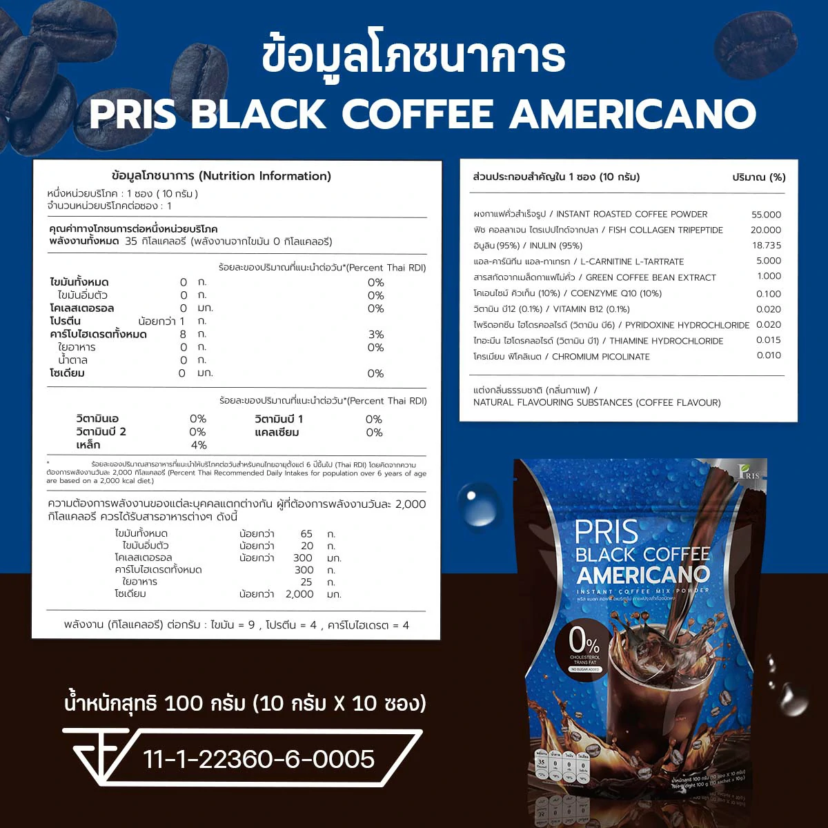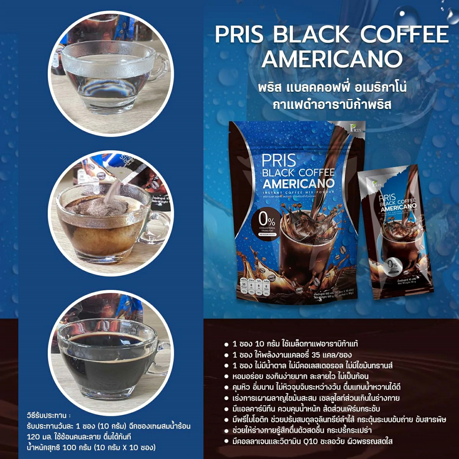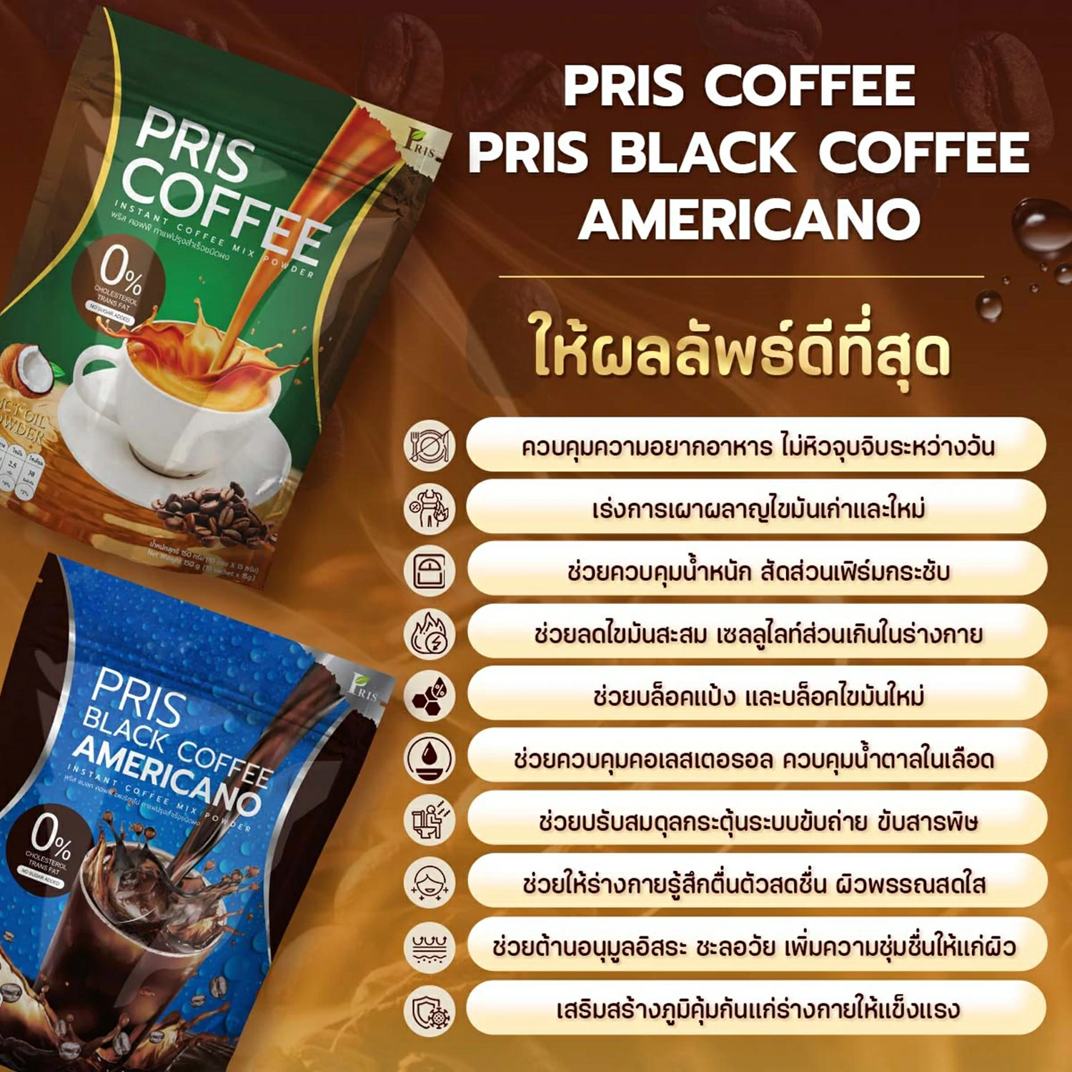 ผลิตภัณฑ์เสริมอาหารกาแฟปรุงสำเร็จชนิดผง รสชาติหอม อร่อย กลมกล่อม ที่เป็นสูตรเฉพาะของแบรนด์ PRIS ที่ช่วยแก้ปัญหารูปร่างได้อย่างตรงจุด ควบคุมน้ำหนัก สัดส่วนเฟิร์มกระชับ ควบคุมความอยากอาหาร ไม่หิวจุบจิบระหว่างวัน มี L-Carnitine L-Tartrate เร่งการเผาผลาญไขมันเก่าและใหม่ ลดไขมันสะสม เซลลูไลท์ส่วนเกินในร่างกาย ยังมีพรีไบโอติก ช่วยปรับสมดุลจุลินทรีย์ชนิดดีในลำไส้ให้ดีขึ้น กระตุ้นระบบขับถ่าย ขับสารพิษ ช่วยควบคุมคอเลสเตอรอล ควบคุมน้ำตาลในเลือด และมี Fish Collagen Tripeptide, Co-enzyme Q10 และวิตามินรวมอีกหลากหลายชนิด ที่ช่วยต้านอนุมูลอิสระ ชะลอวัย เพิ่มความชุ่มชื่นให้แก่ผิว เสริมสร้างภูมิคุ้มกันของร่างกายให้แข็งแรง ให้ร่างกายรู้สึกตื่นตัวสดชื่น สุขภาพดี และผิวพรรณสดใสภายในสู่ภายนอก