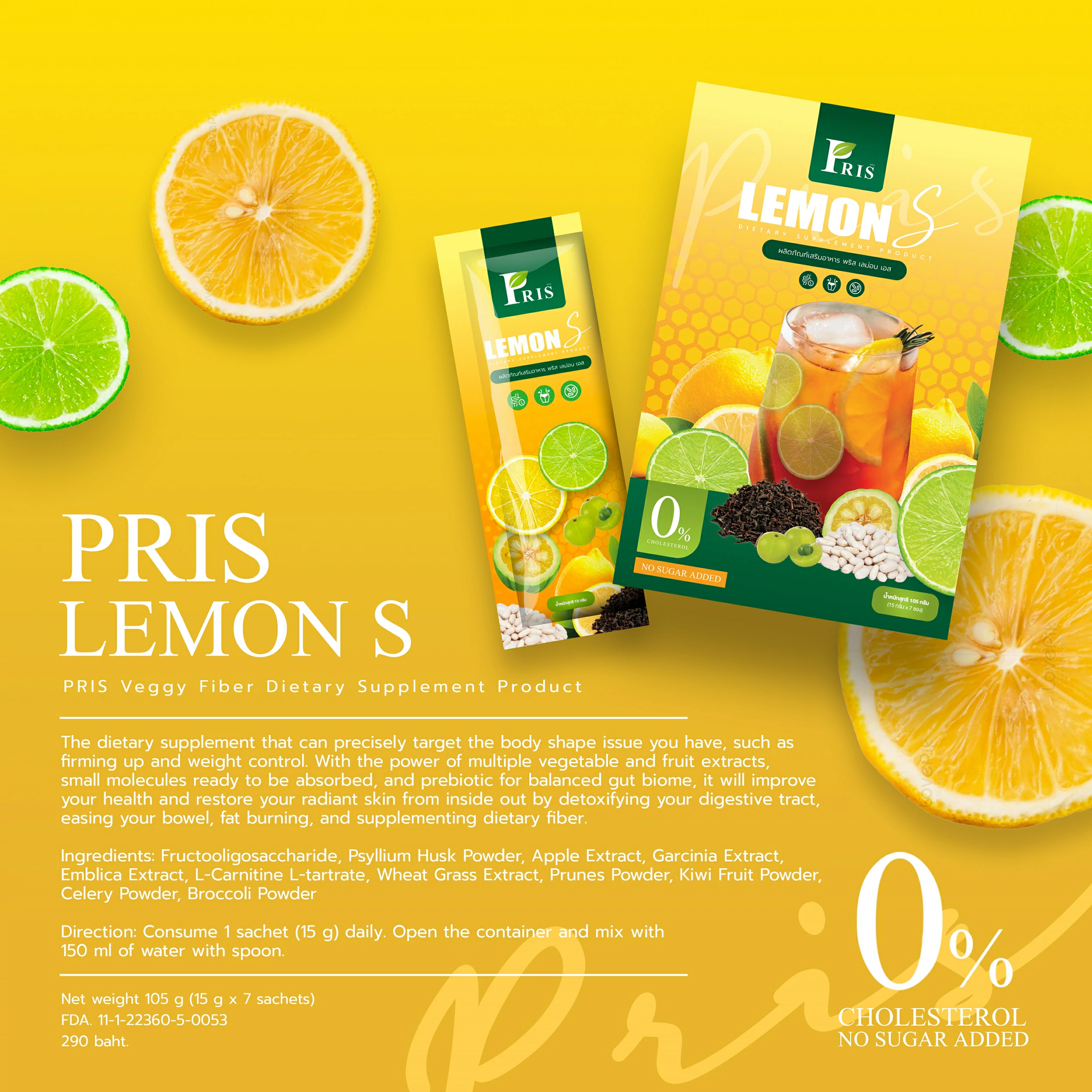 Ingredients : Fructooligosaccharide, Psyllium Husk Powder, Apple Extract, Garcinia Extract, Emblica Extract, L-Carnitine L-tartrate, Wheat Grass Extract, Prunes Powder, Kiwi Fruit Powder, Celery Powder, Broccoli Powder