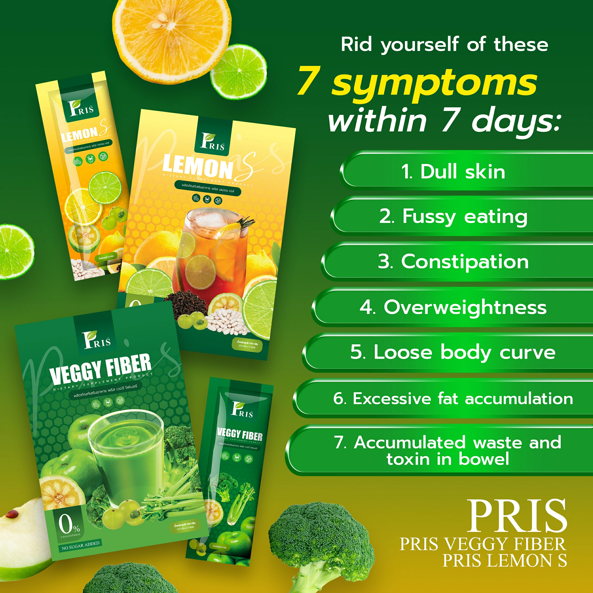 The dietary supplement that can precisely target the body shape issue you have, such as firming up and weight control. With the power of multiple vegetable and fruit extracts, small molecules ready to be absorbed, and prebiotic for balanced gut biome, it will improve your health and restore your radiant skin from inside out by detoxifying your digestive tract, easing your bowel, fat burning, and supplementing dietary fiber.