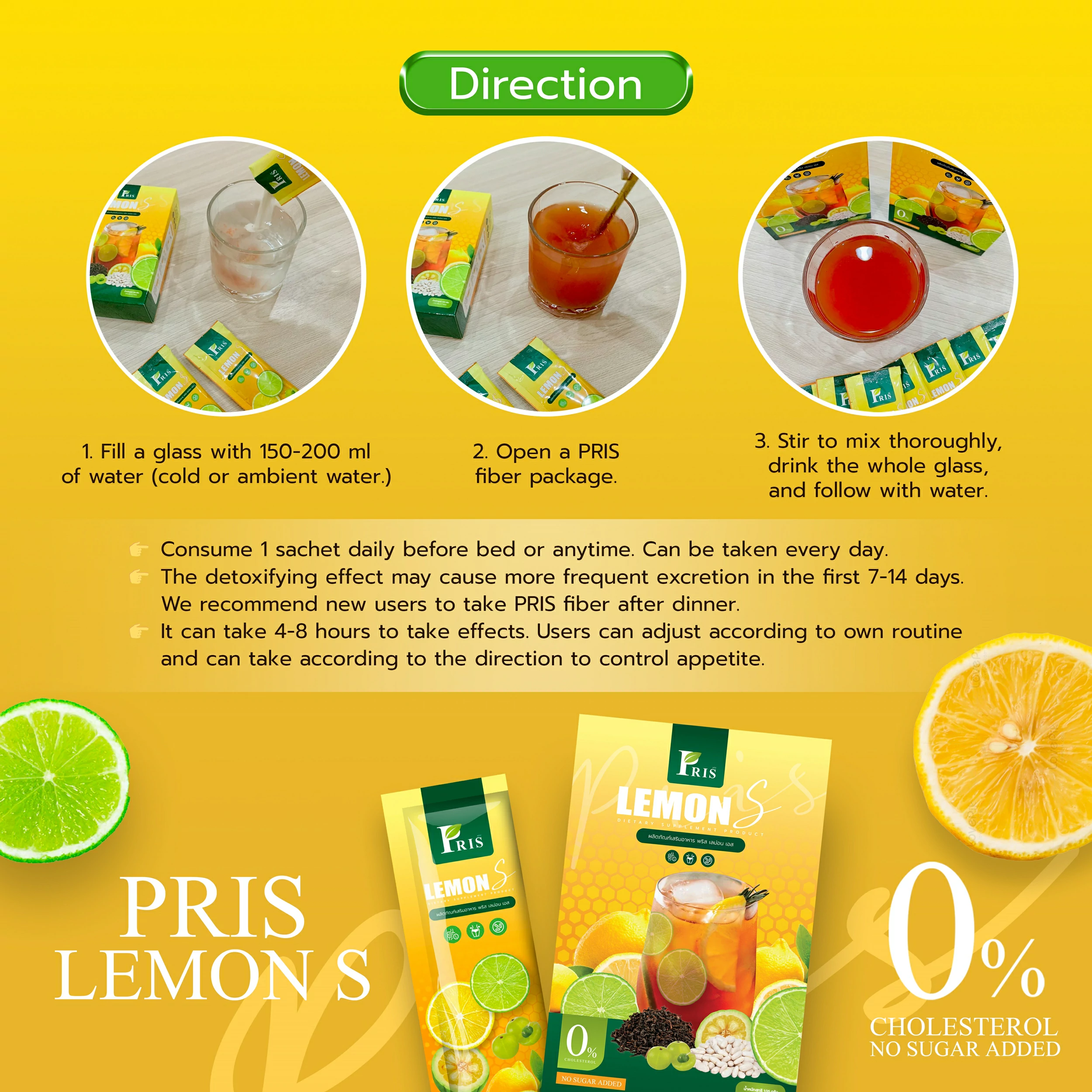 • The detoxifying effect may cause more frequent excretion in the first 7-14 days. We recommend new users to take PRIS fiber after dinner.